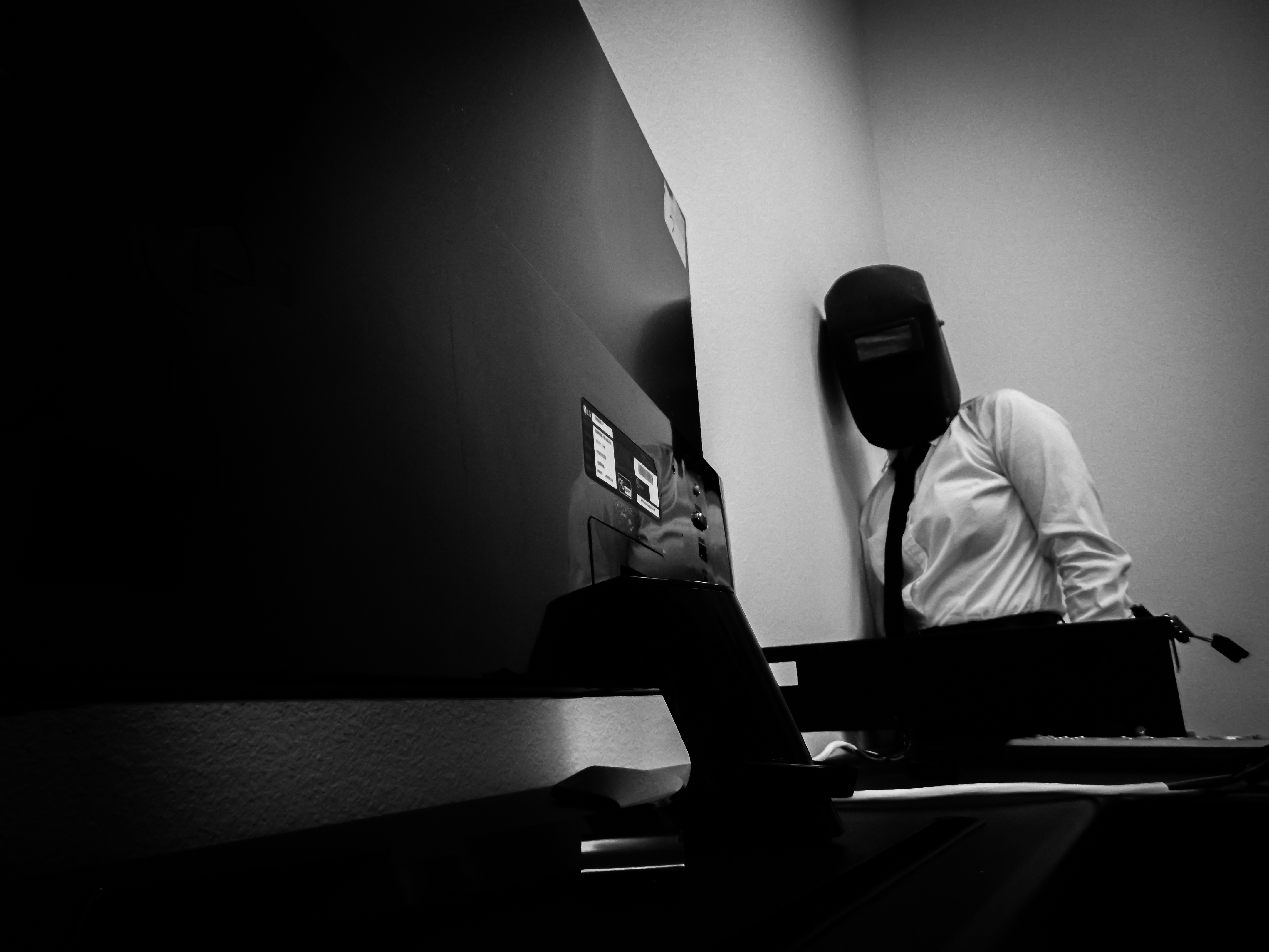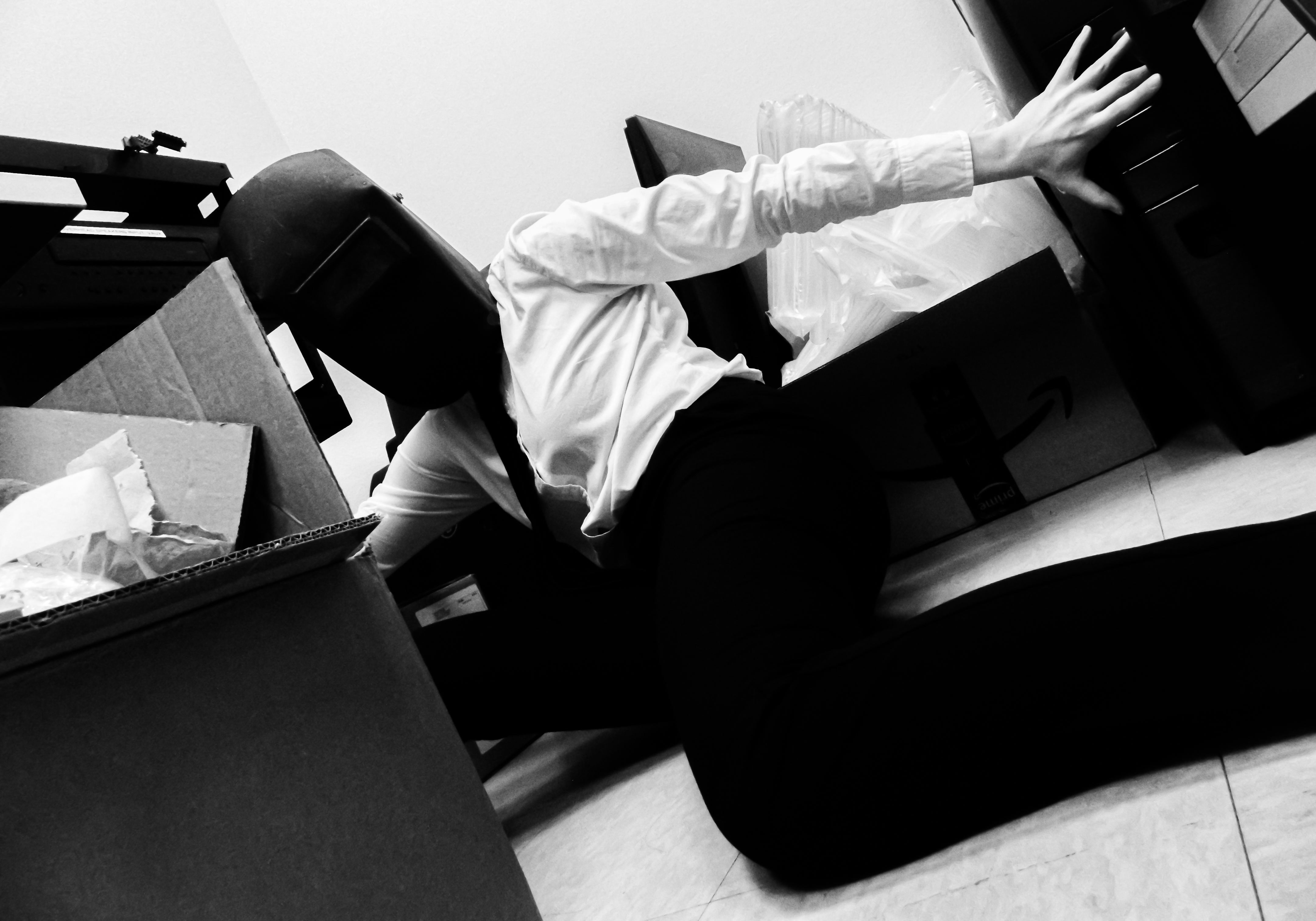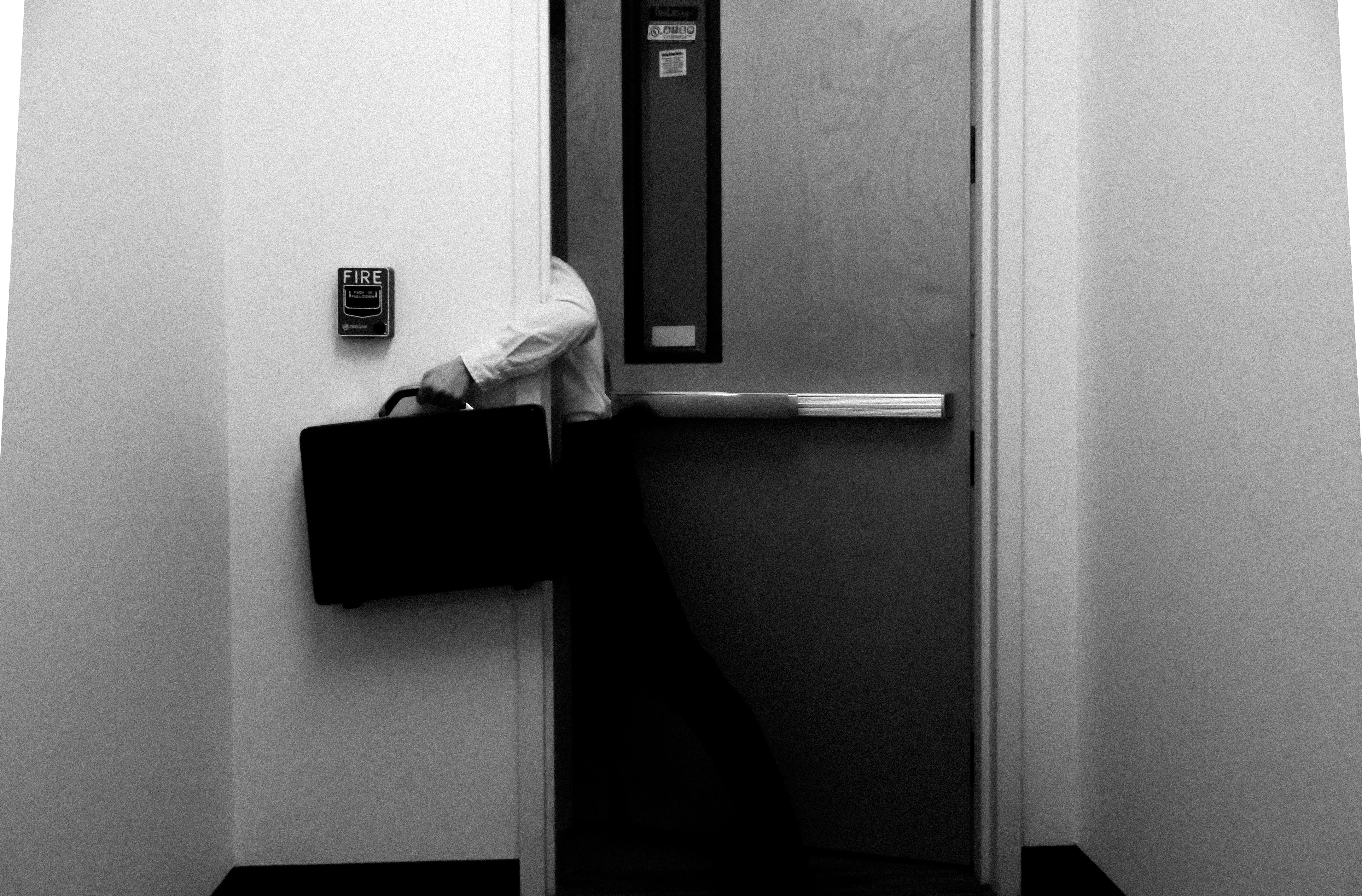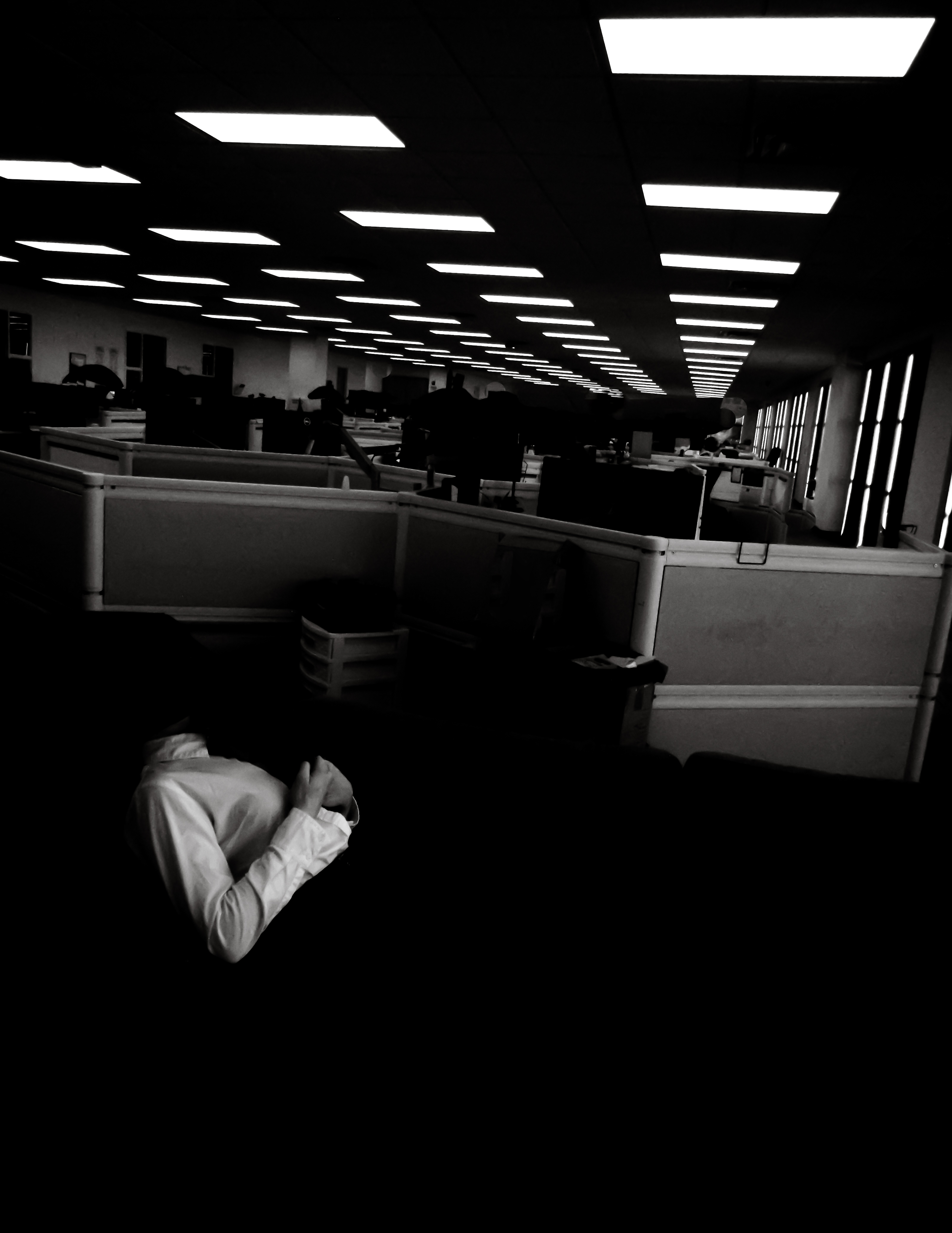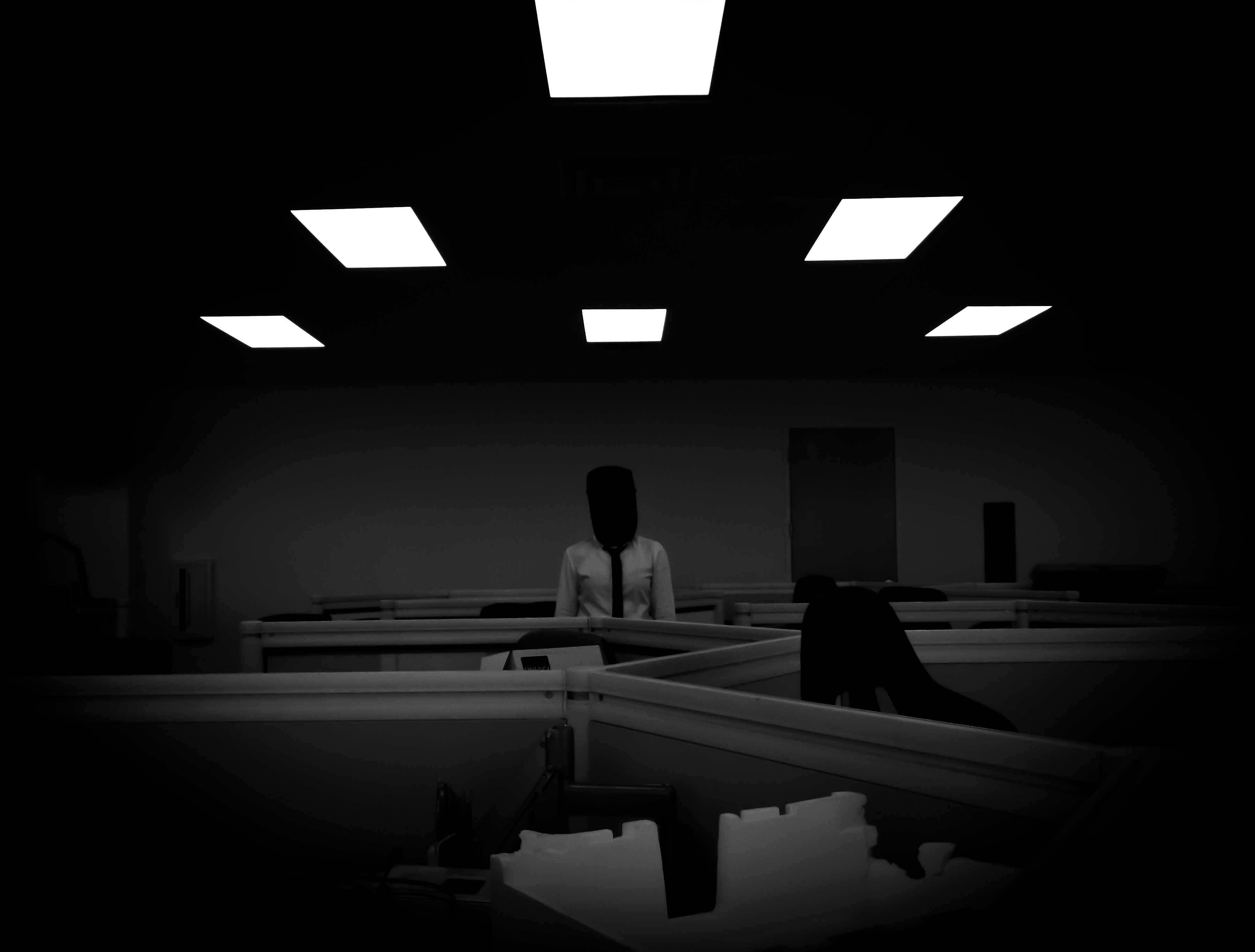 “Anyone who’s ever worked in a corporate office job knows the slow, impending madness of the cubicle, the box, the prison. There’s probably a reason why there’s such overlap in modern corporation and prison architecture – both seem to be trapped in swaths of stark white, black, gray, and brown. It’s cold and uninviting, almost haunting in a way. The black and white Euclidean void fractures personality and cheer. One would think an environment in which the average worker will spend most of their time would have some semblance of warmth or invitation, regardless of the industry. Instead, we’re given the Twilight Zone – a kafkaesque maze of long hallways, sharp corners, and sterile shadows. We get coworkers that we’ll see, probably more than our own families on a given day, but to whom we can never get too close. Things get surreal after a while.”