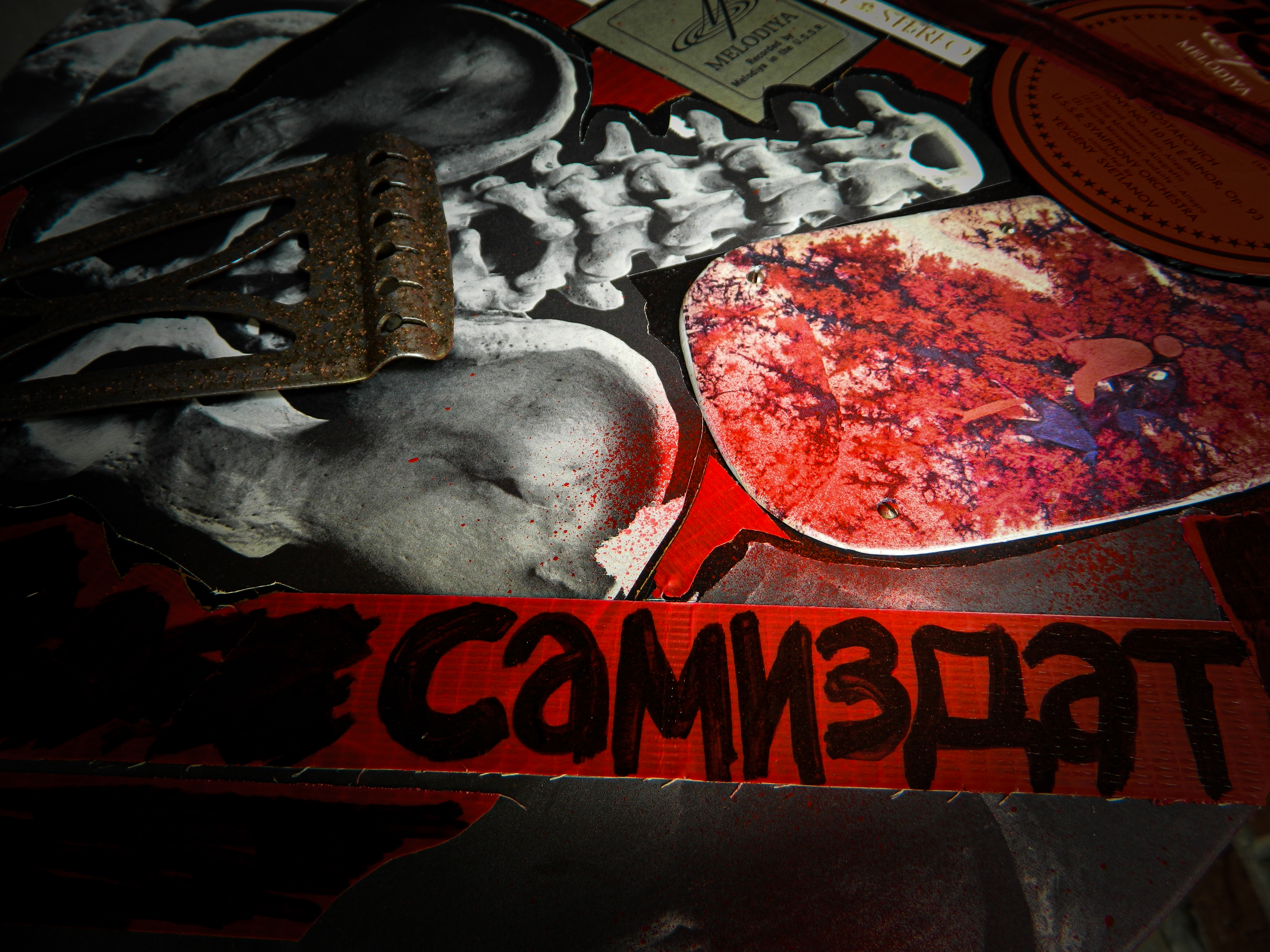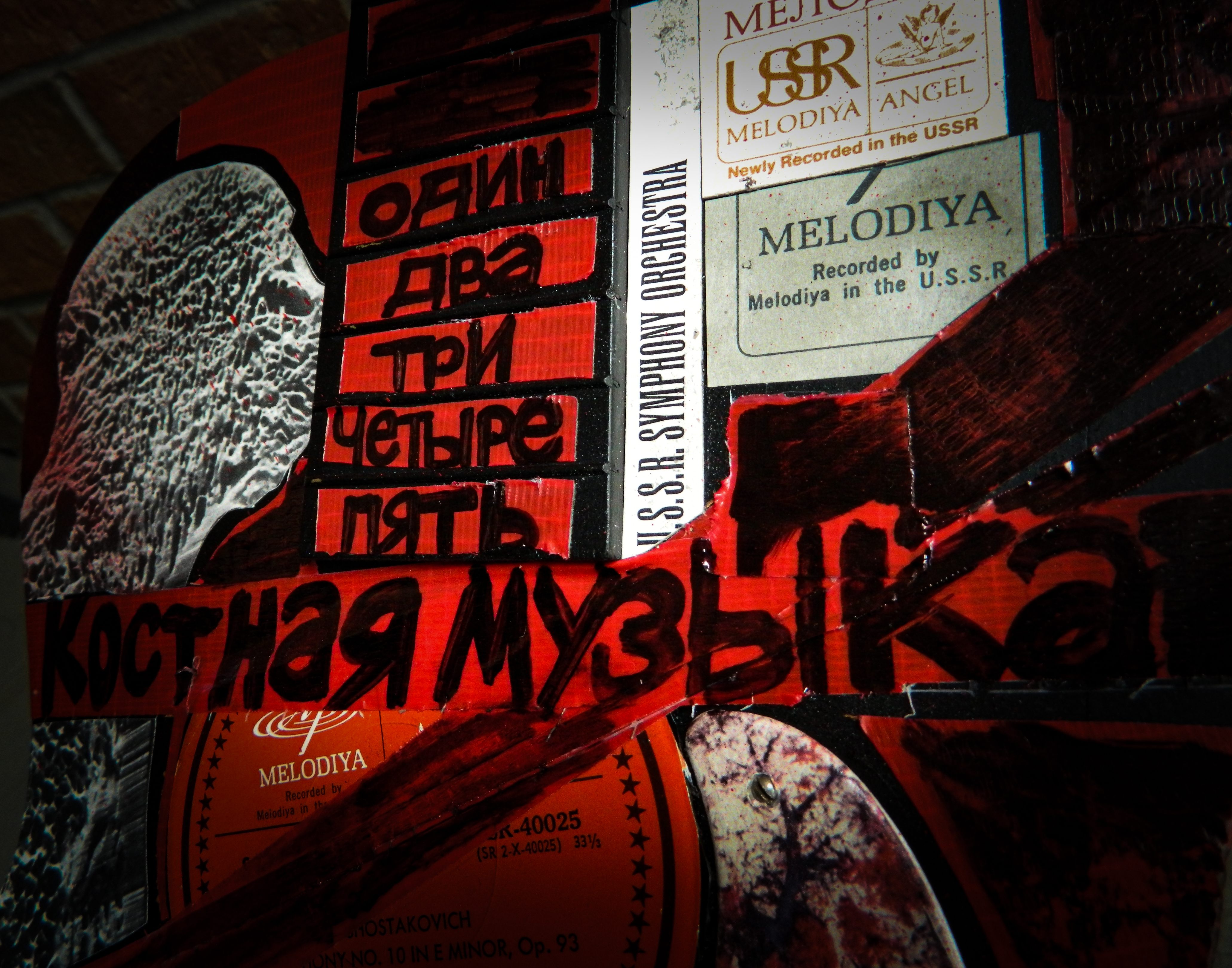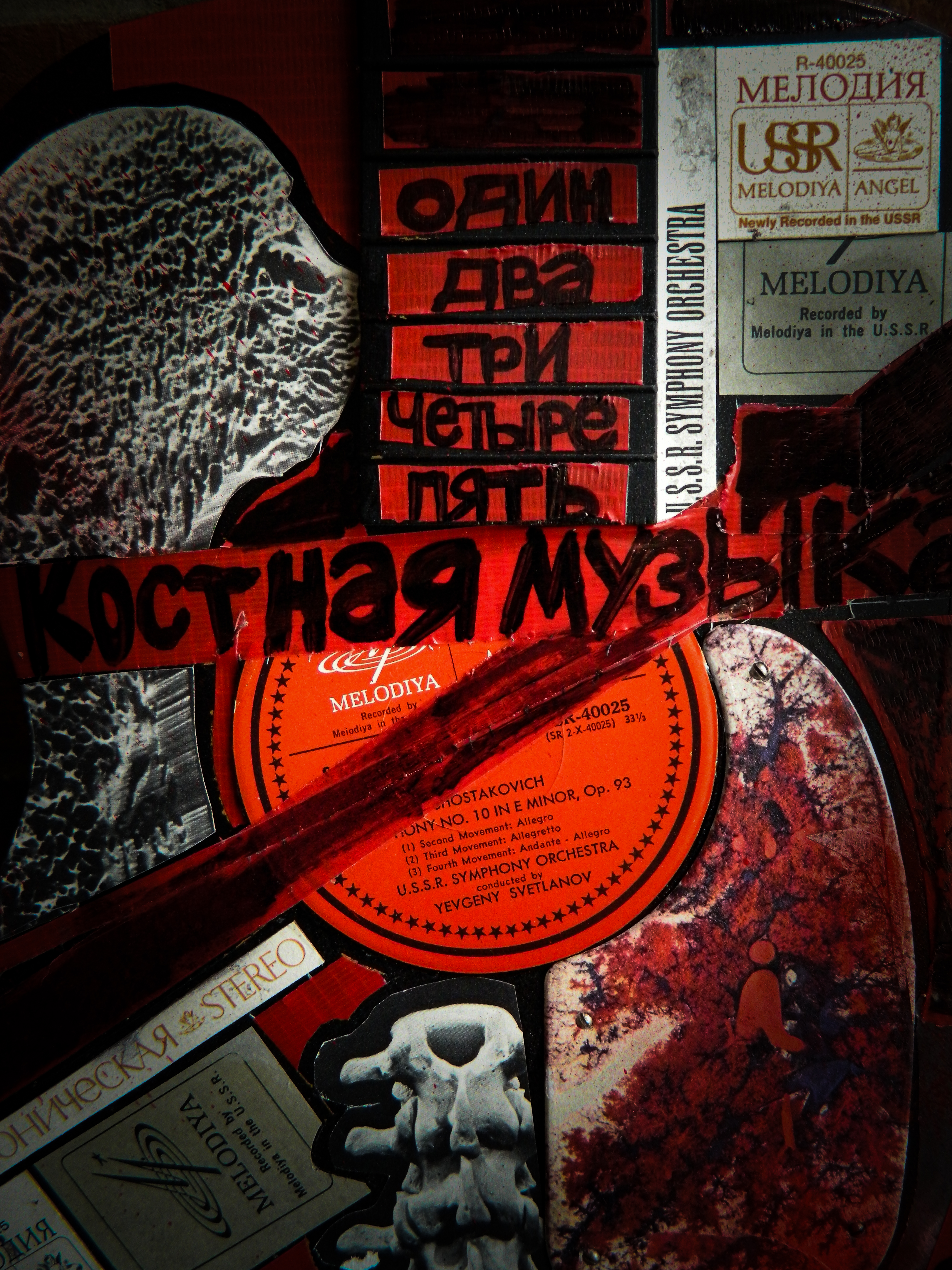 Inspired by the censorship of Western music during the SAMIZDAT movement of Soviet Russia, which produced an entire underground industry of culture that was fiercely monitored by the State. In lieu of vinyl and other resources, music records featuring banned artists were instead printed on discarded x-ray sheets from local hospitals, known as “bone music” or “ribs” on the black market.