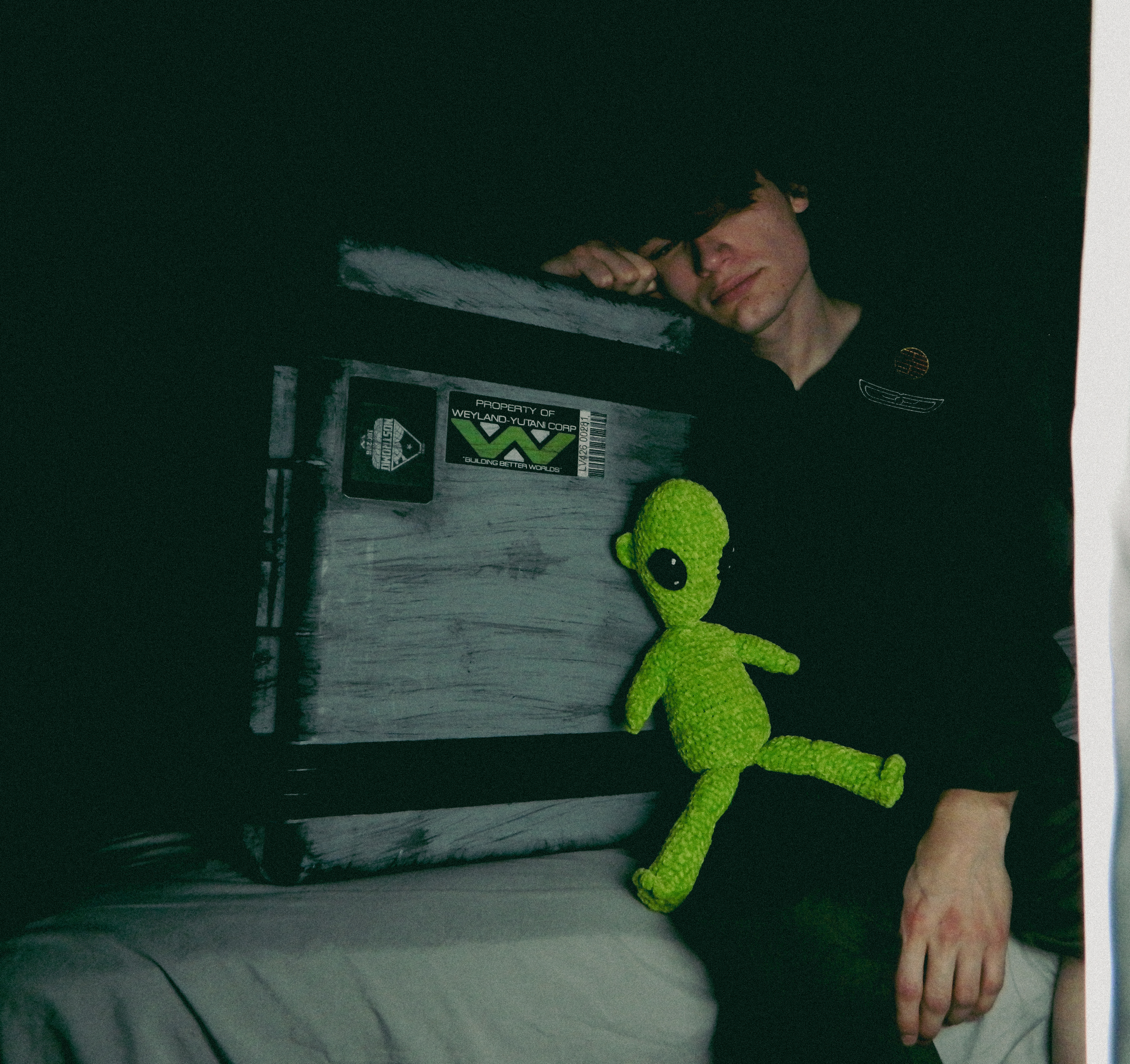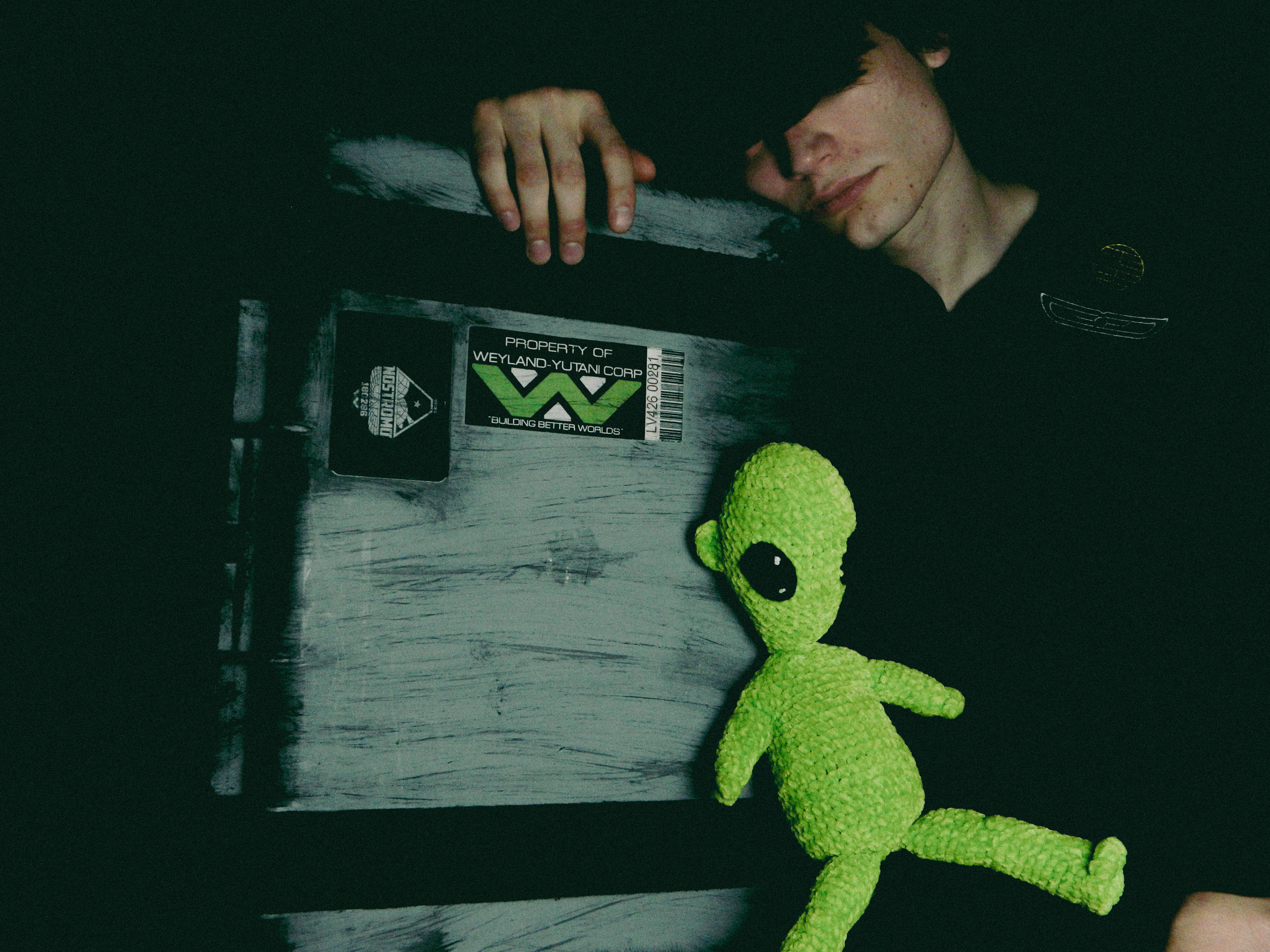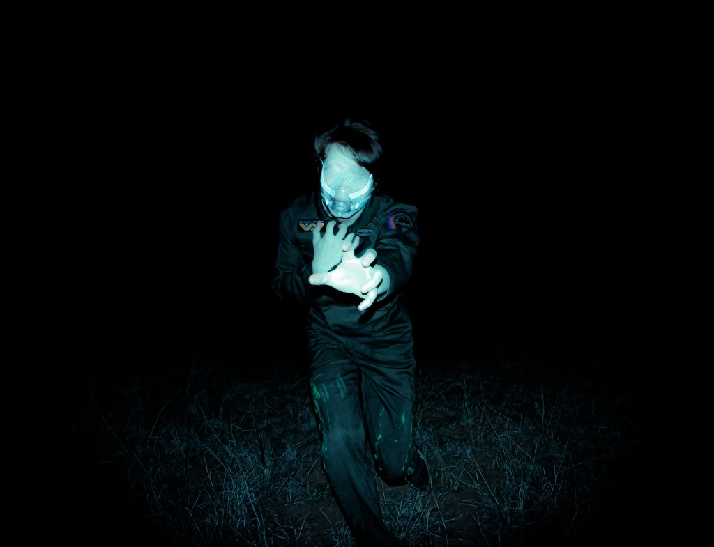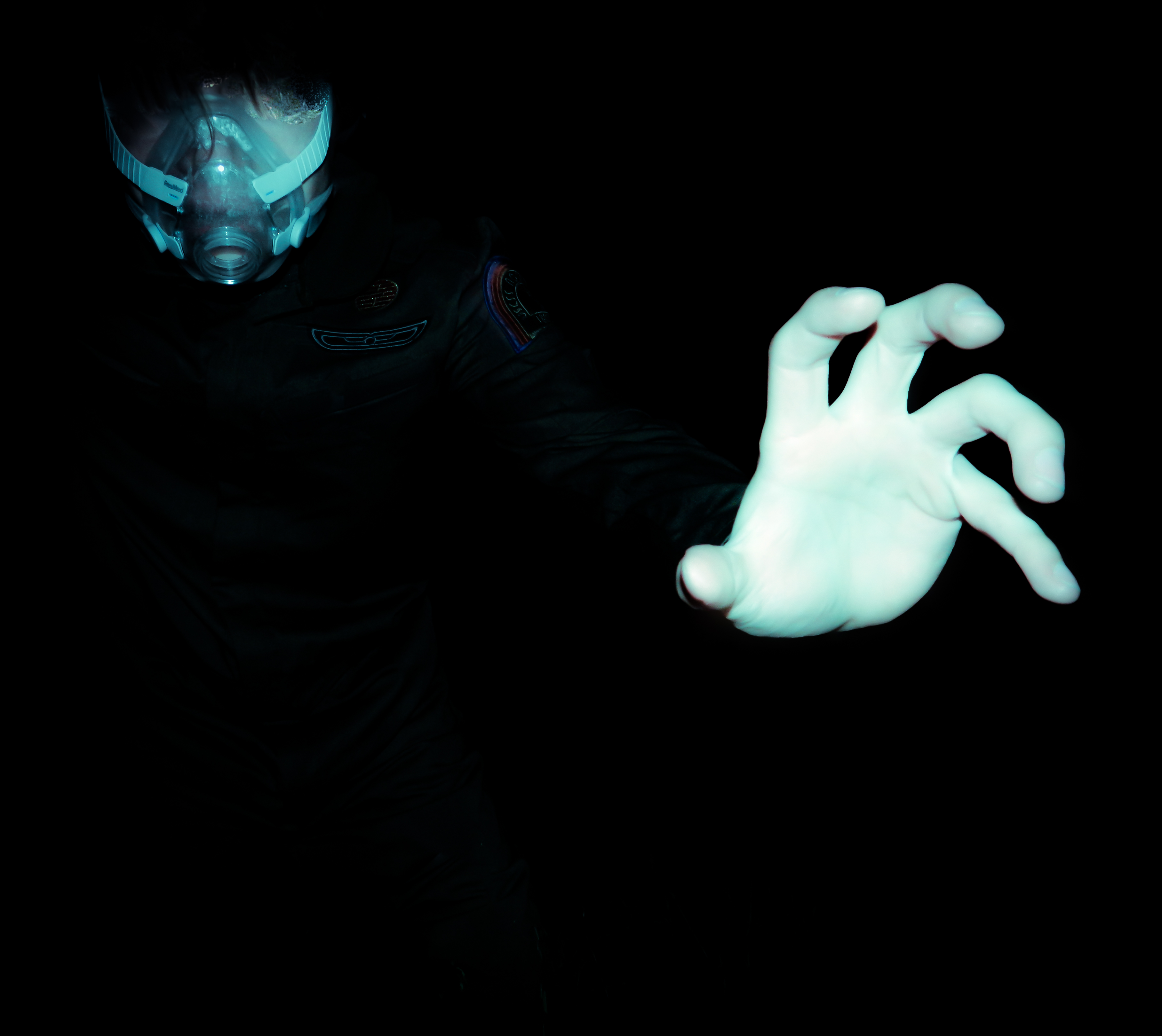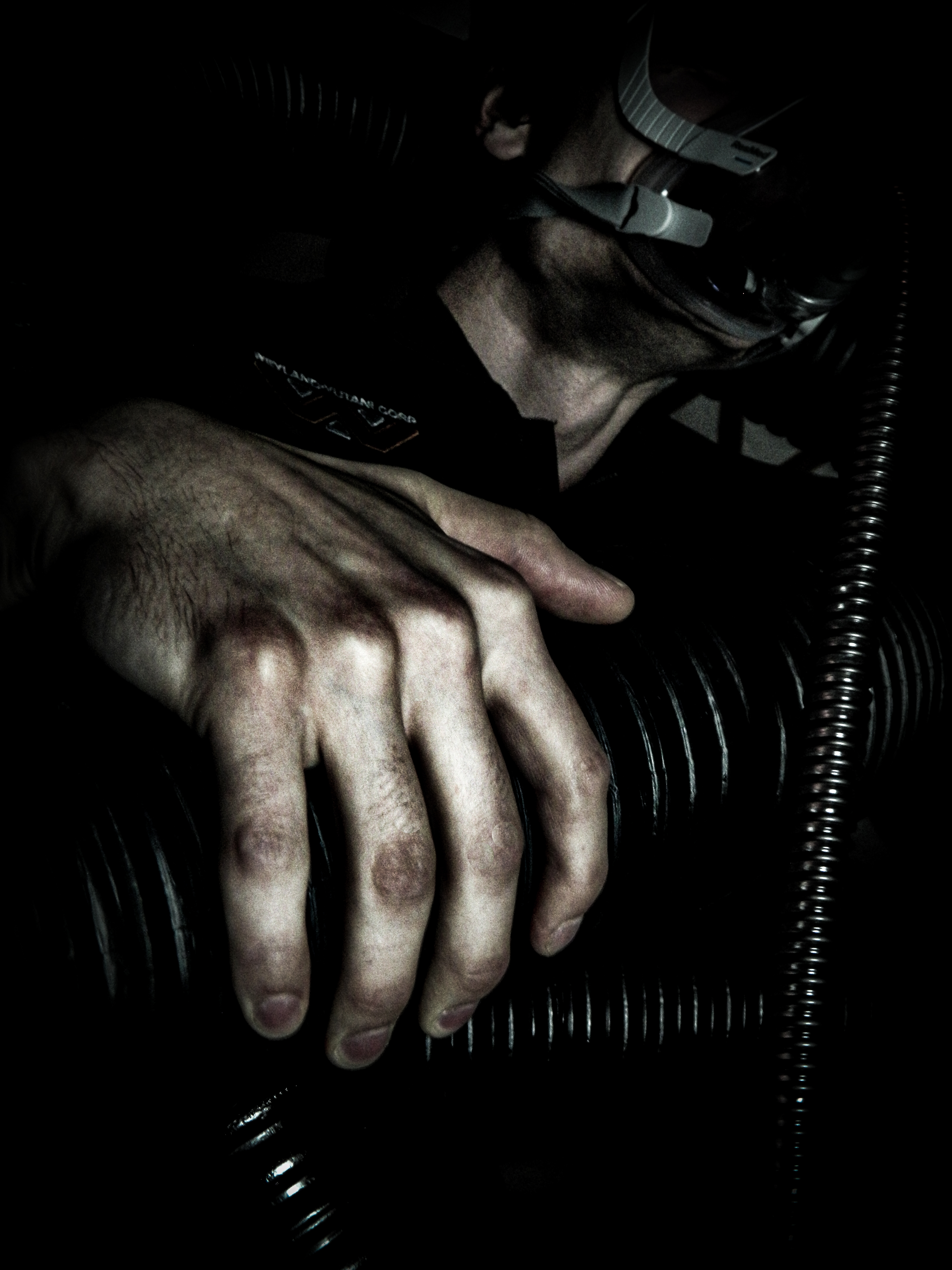“Ever since I was diagnosed with severe obstructive sleep apnea, I couldn’t help but draw parallels between the organic texture of my CPAP machine and the biomechanics of H.R. Giger’s work, namely, his work on Ridley Scott’s Alien (1979), a frequent bedtime movie of mine. Having spent many a night unable to breathe, only to then be secured to this bizarre face apparatus, I felt the marriage of themes produced a clear outline for a conceptual scene: a portait of an exhausted victim whose nightmare takes the form of smothering, strangulation, and the bodily invasion of some alien entity.”