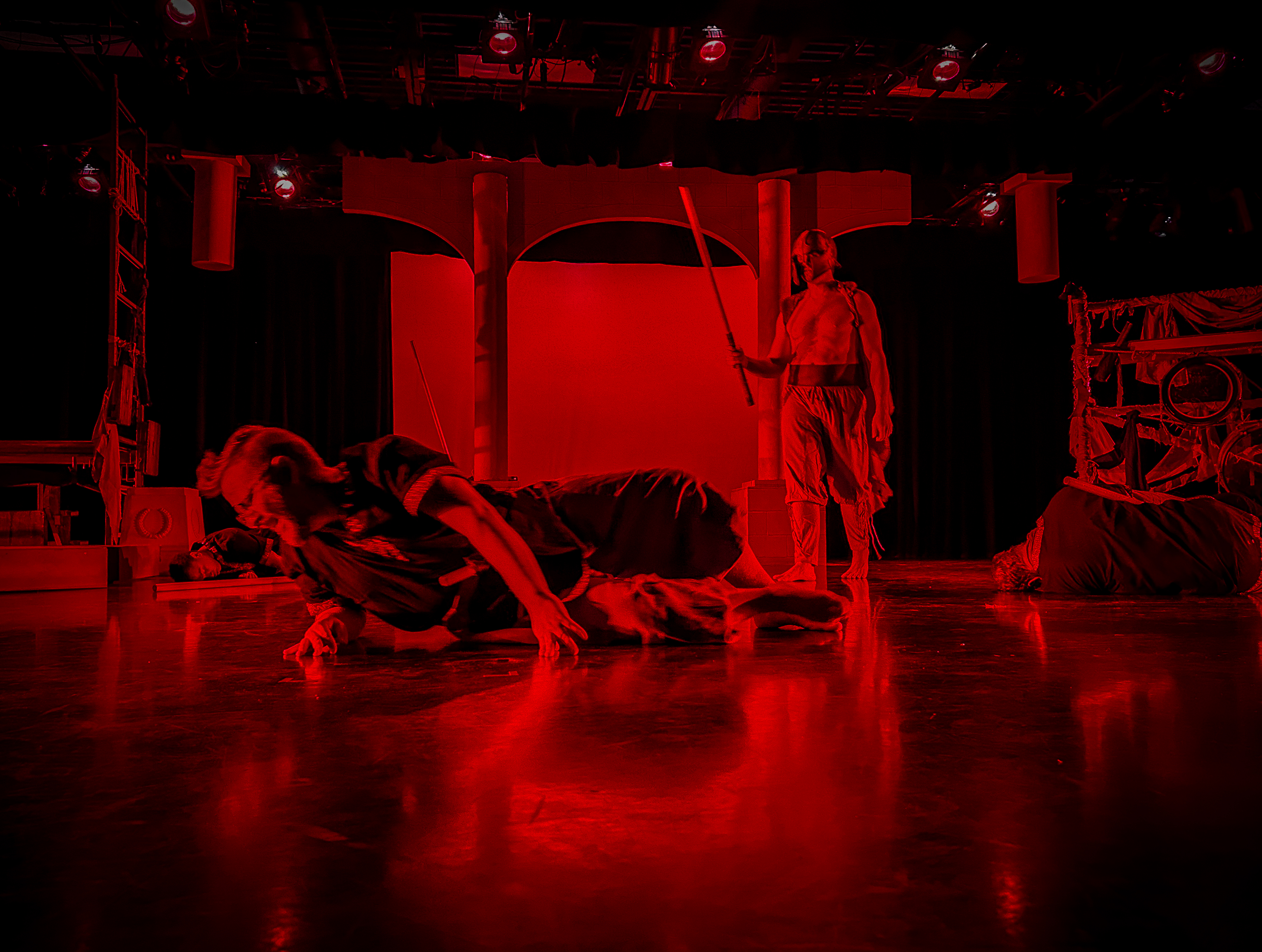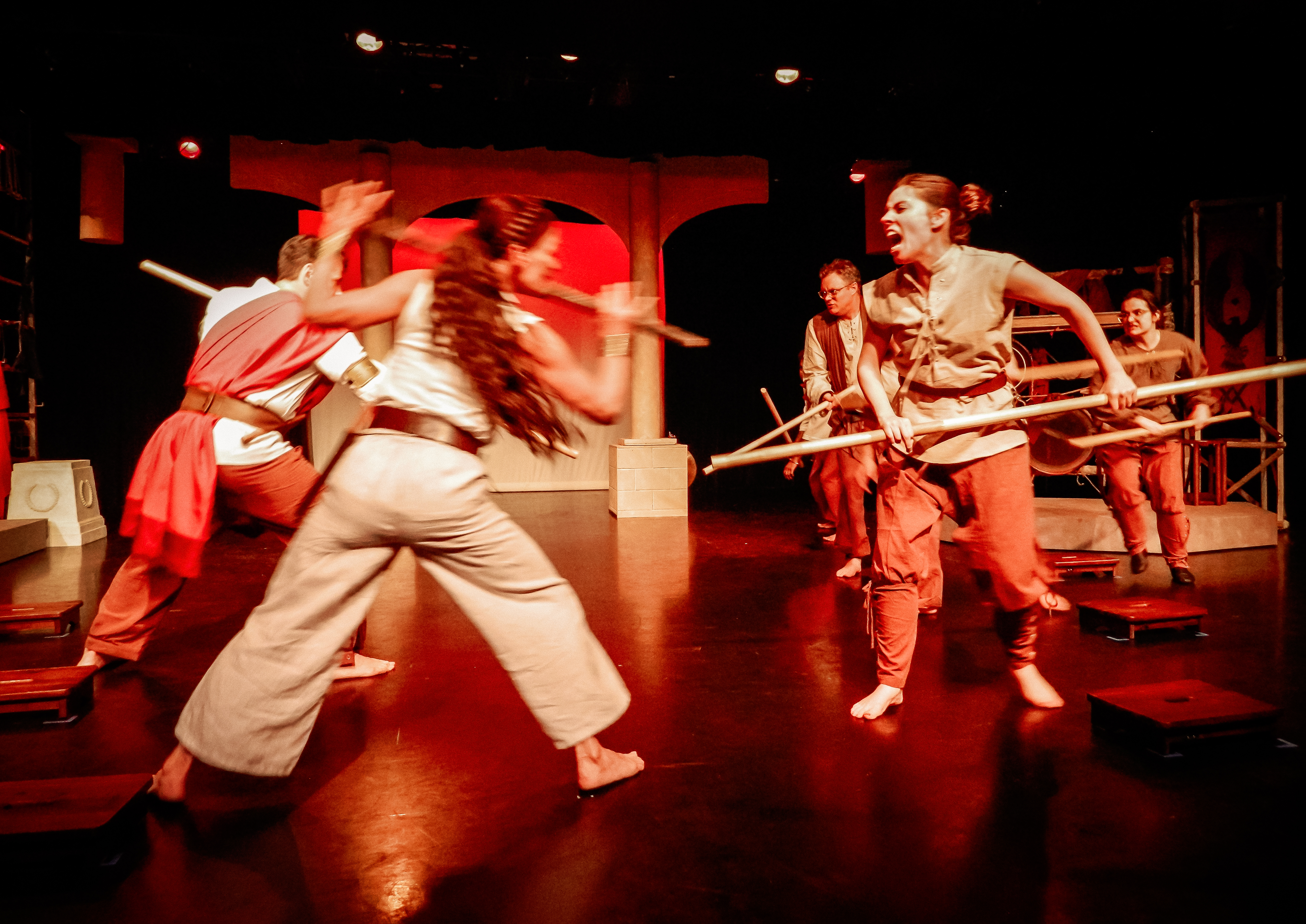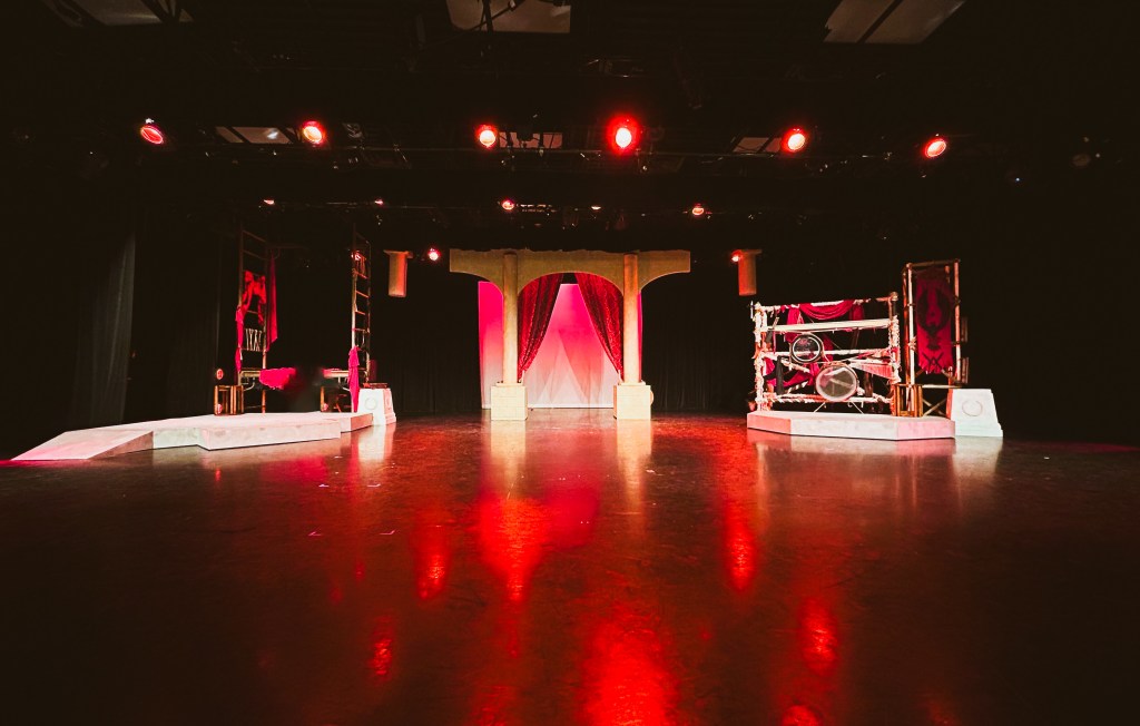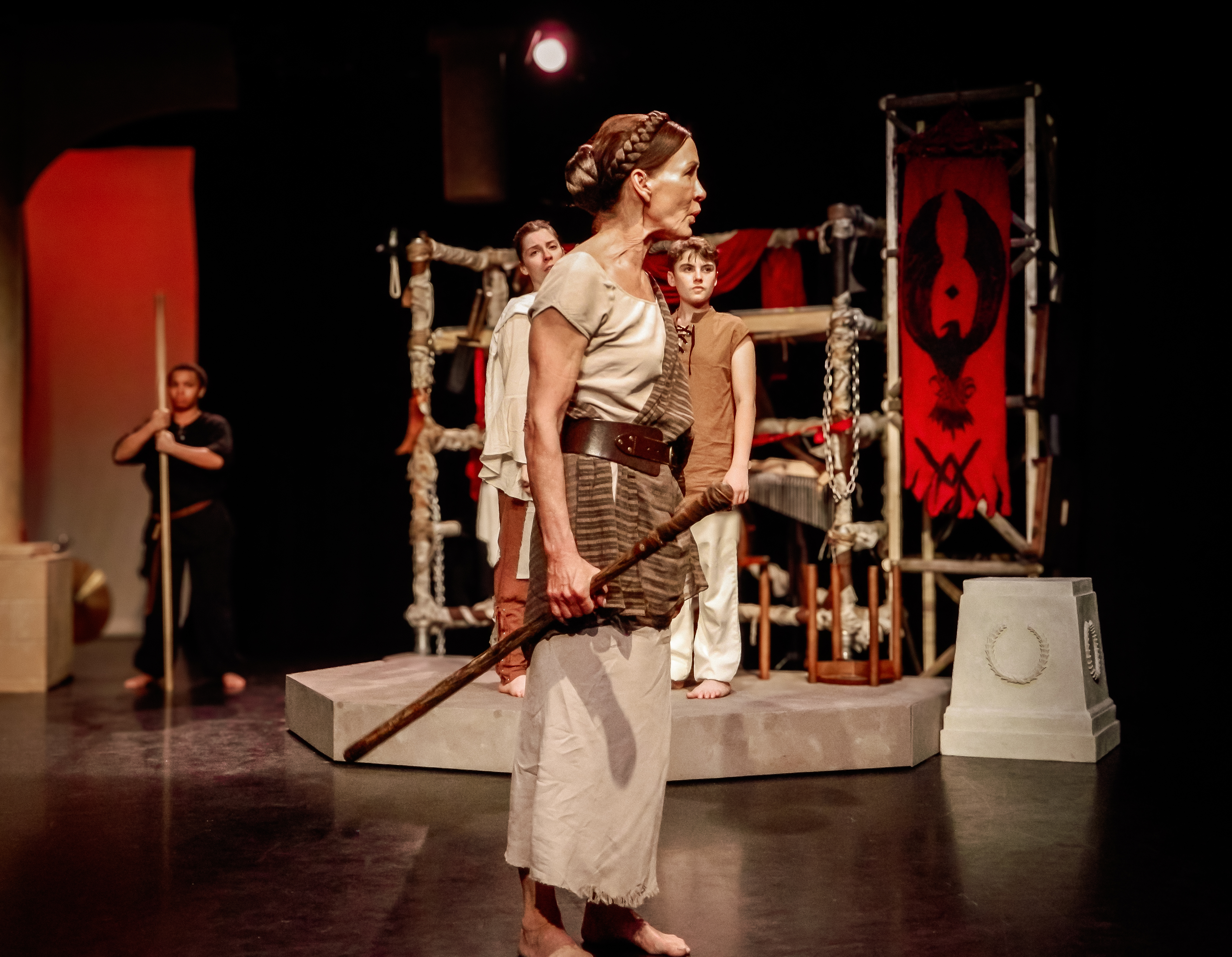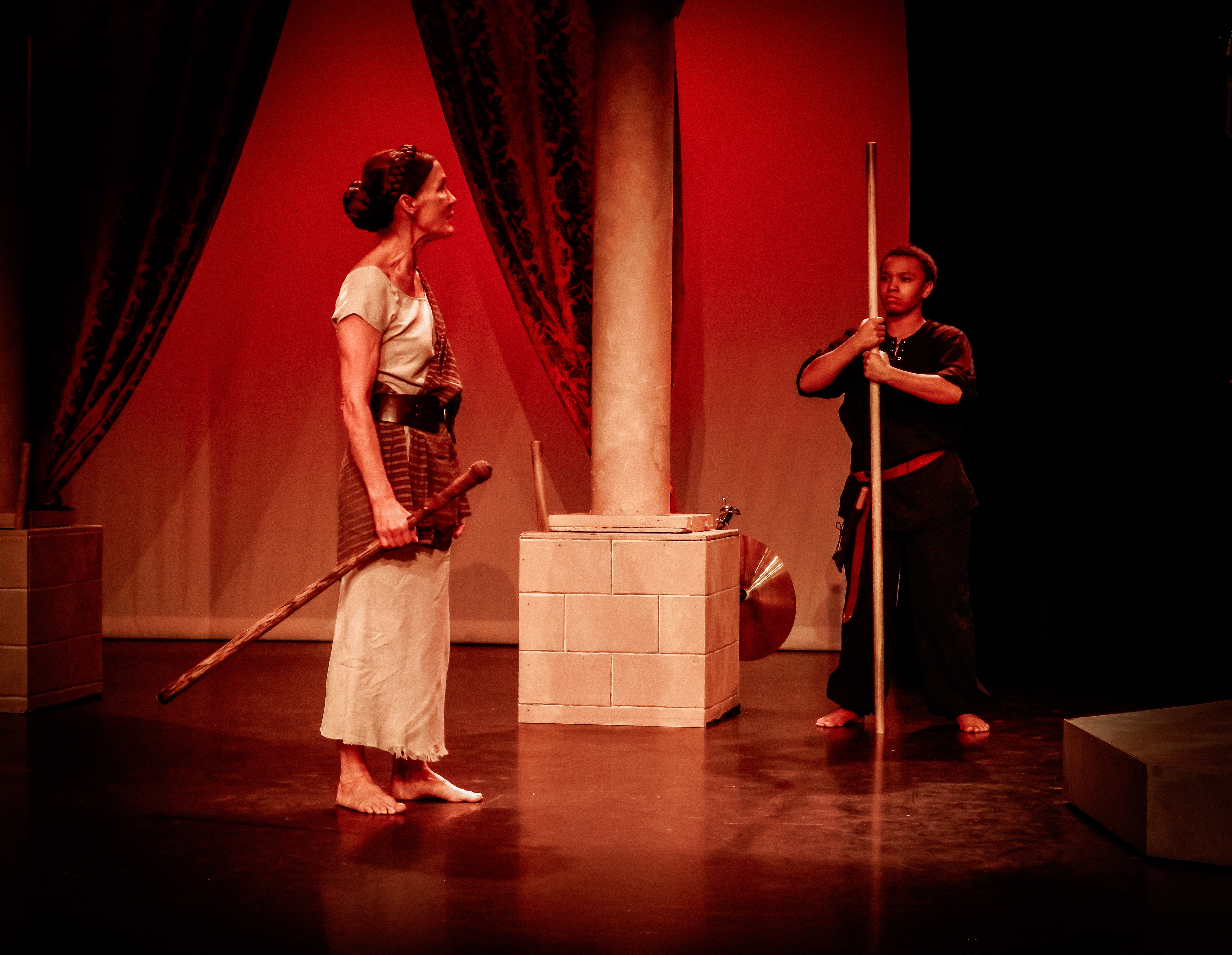 “Prop designer Quinten Avila provides props that are easily used by the actors and evoke the ancient time of the play.”