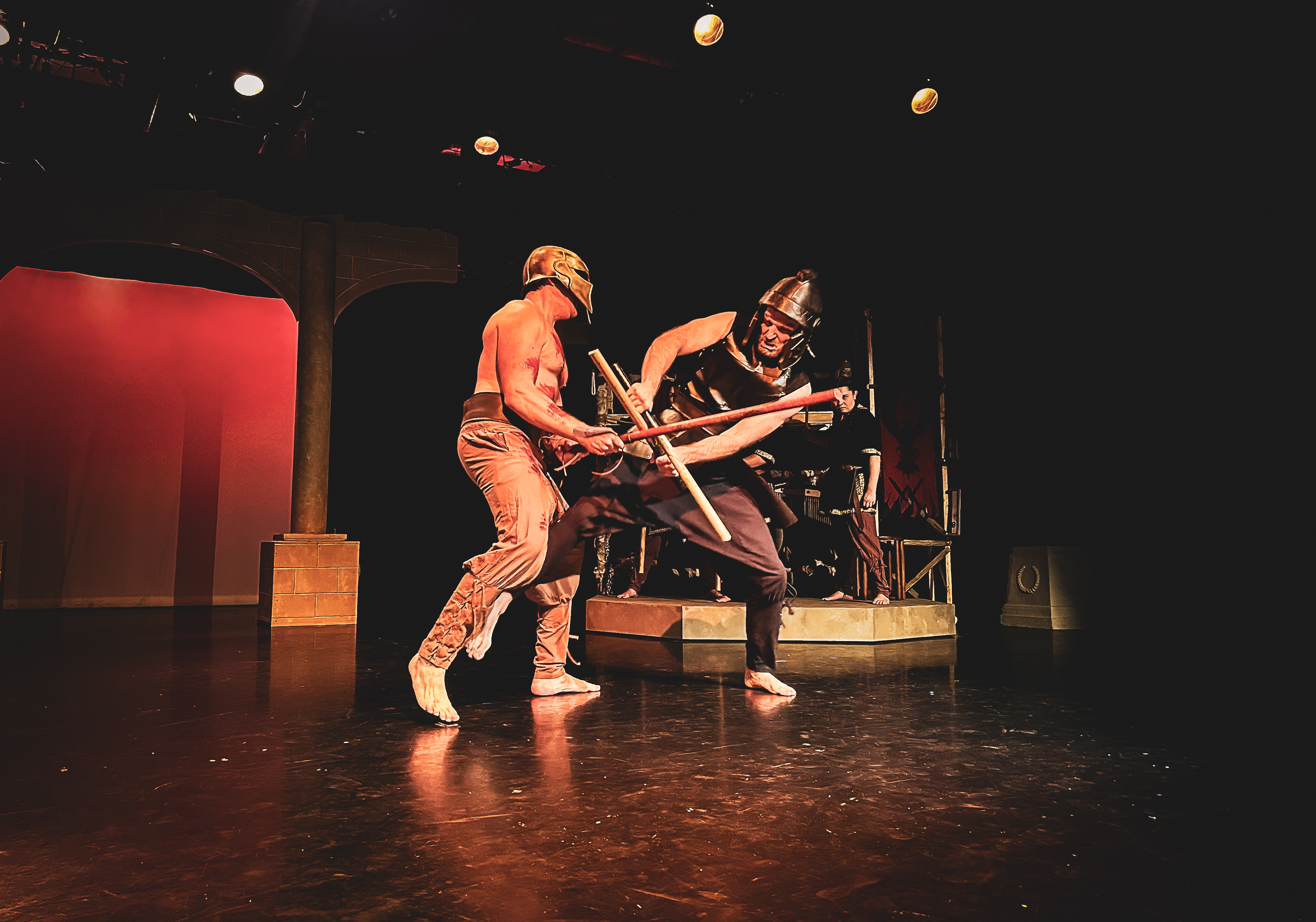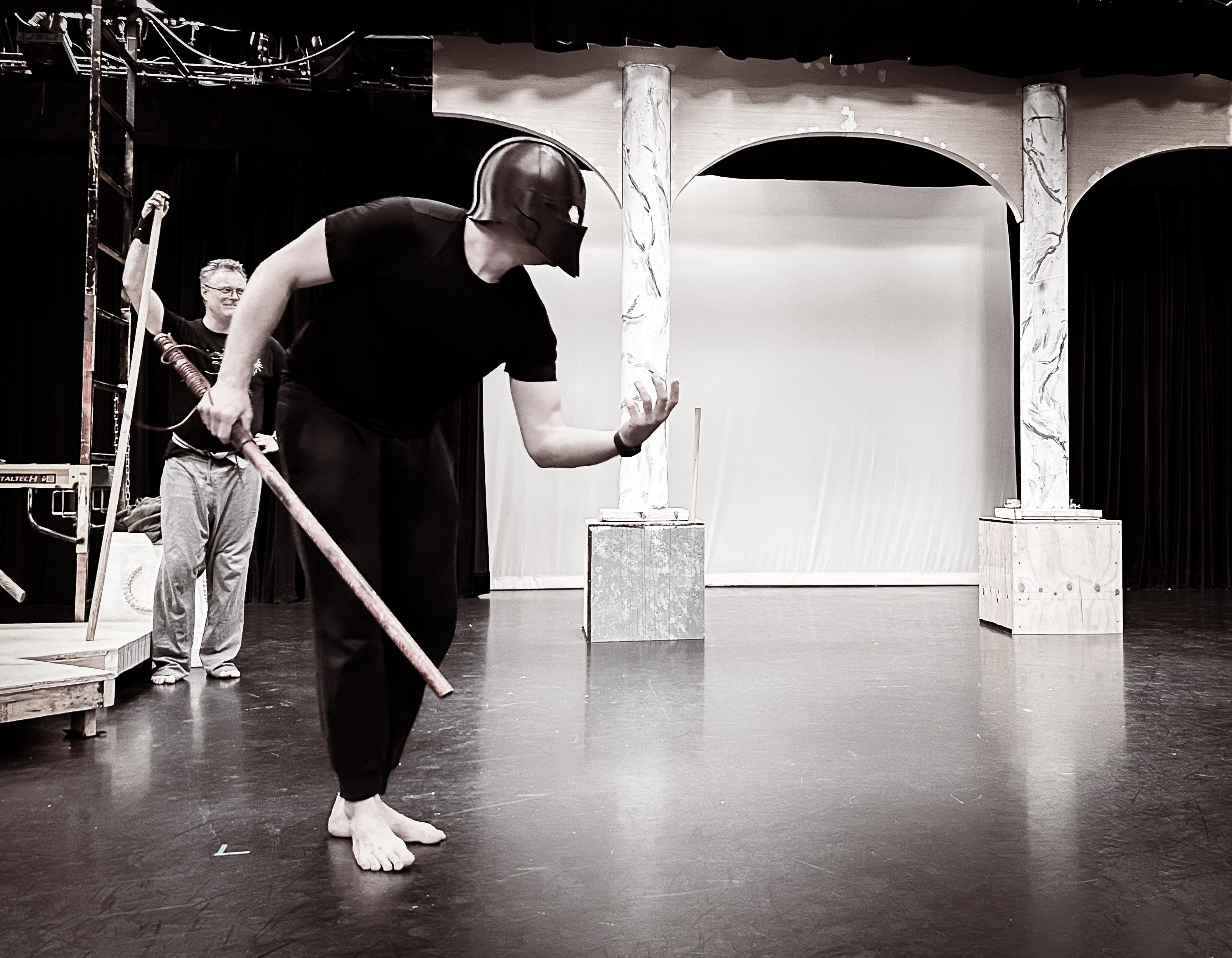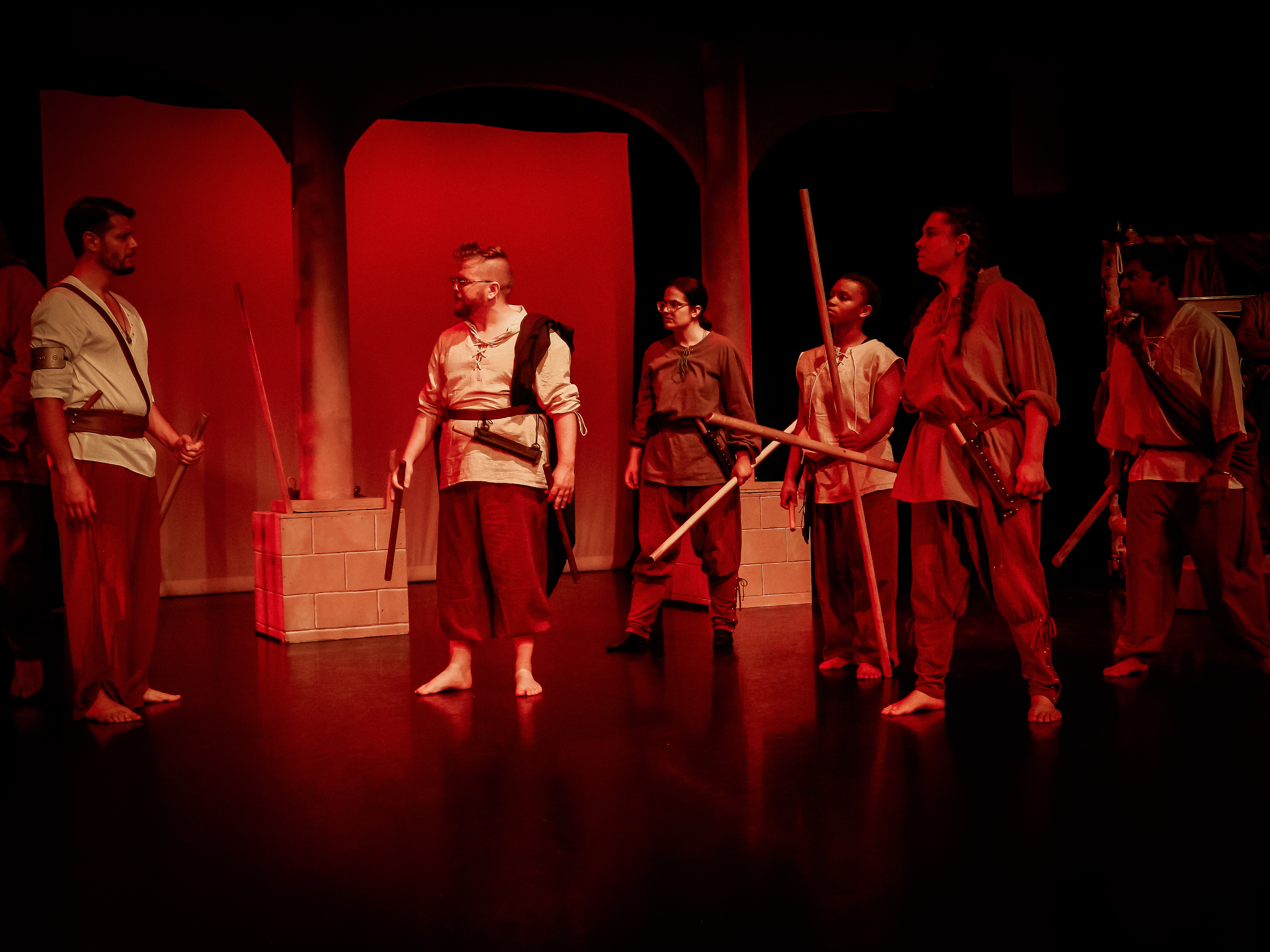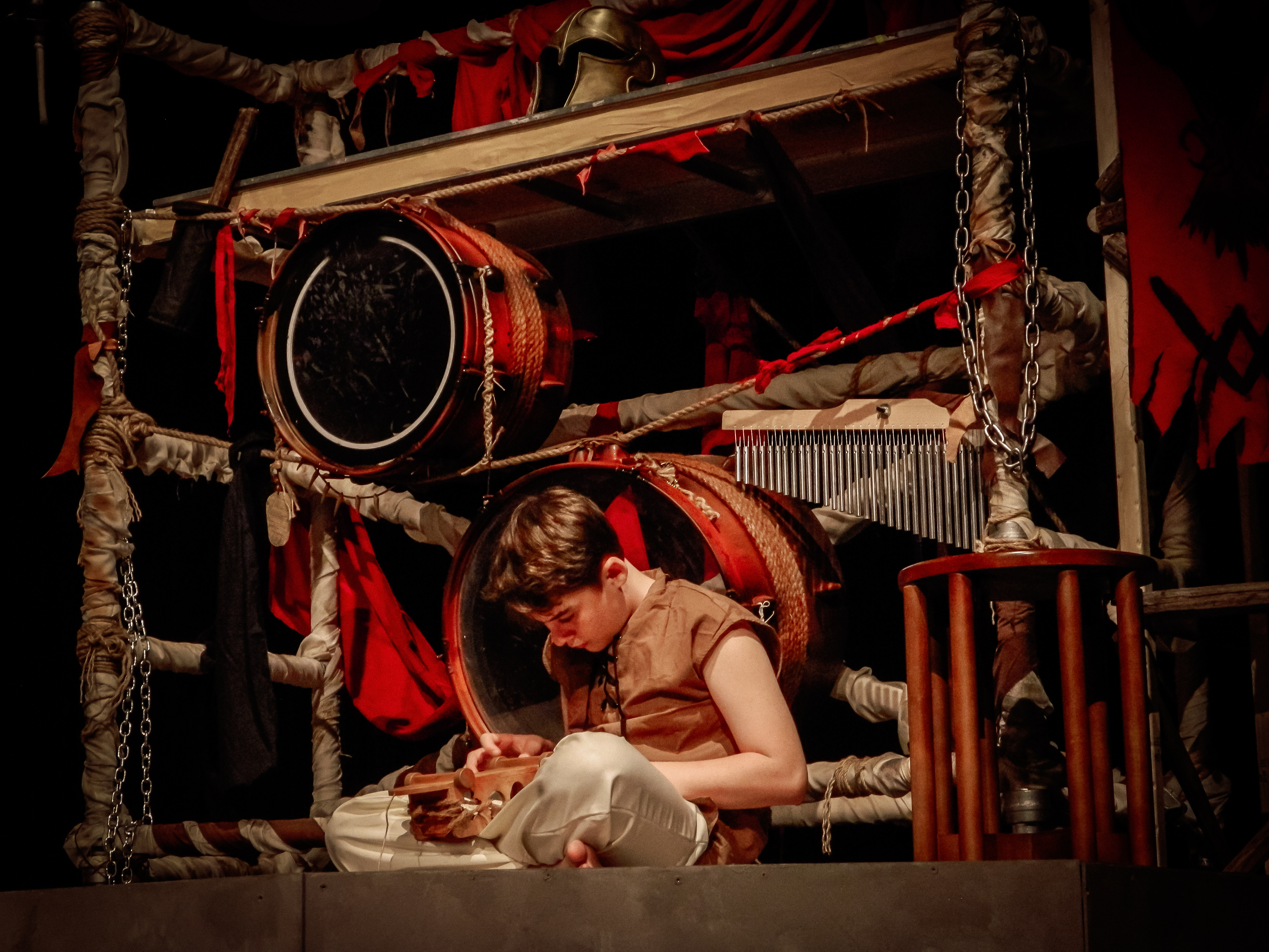 “Prop designer Quinten Avila provides props that are easily used by the actors and evoke the ancient time of the play.”
