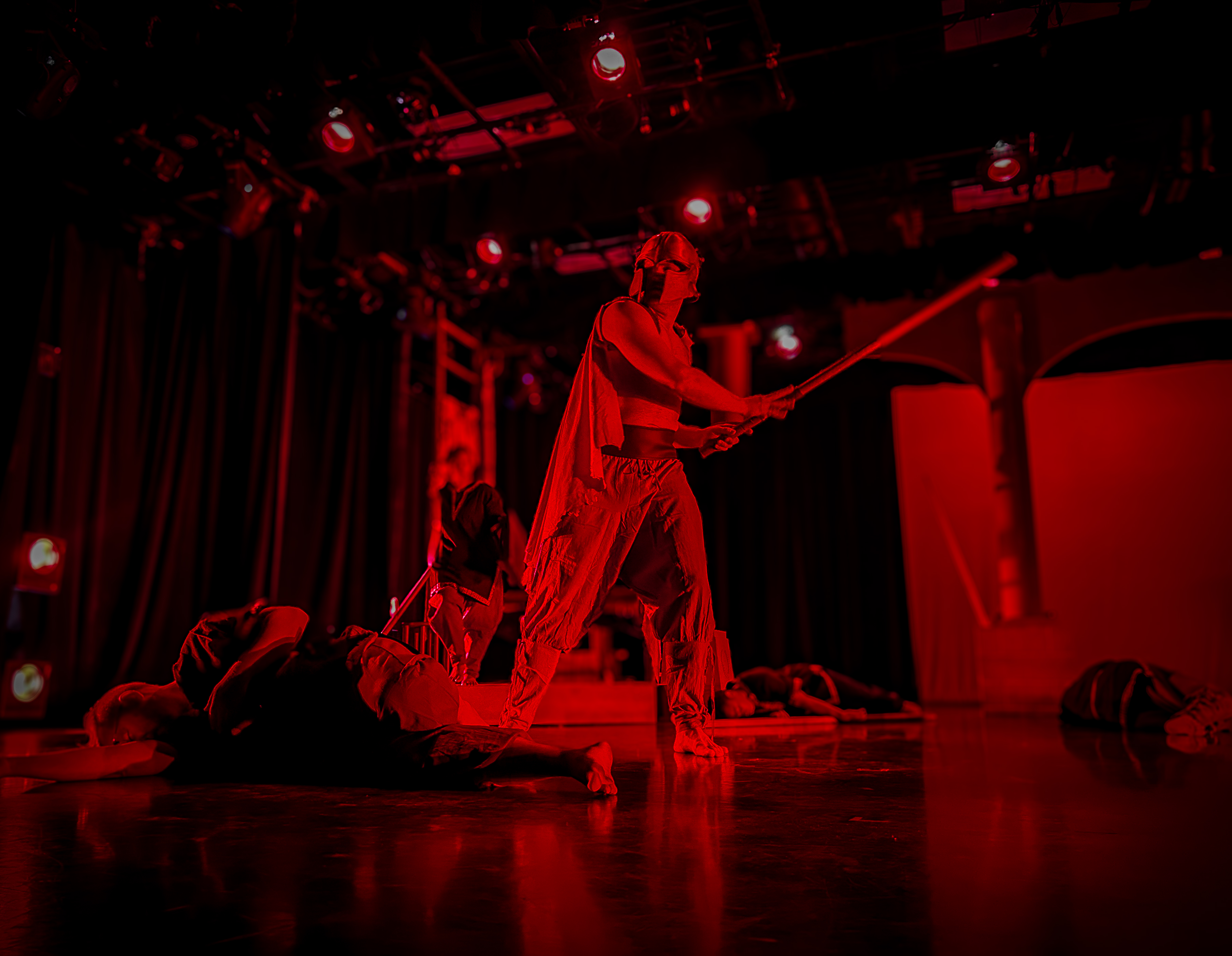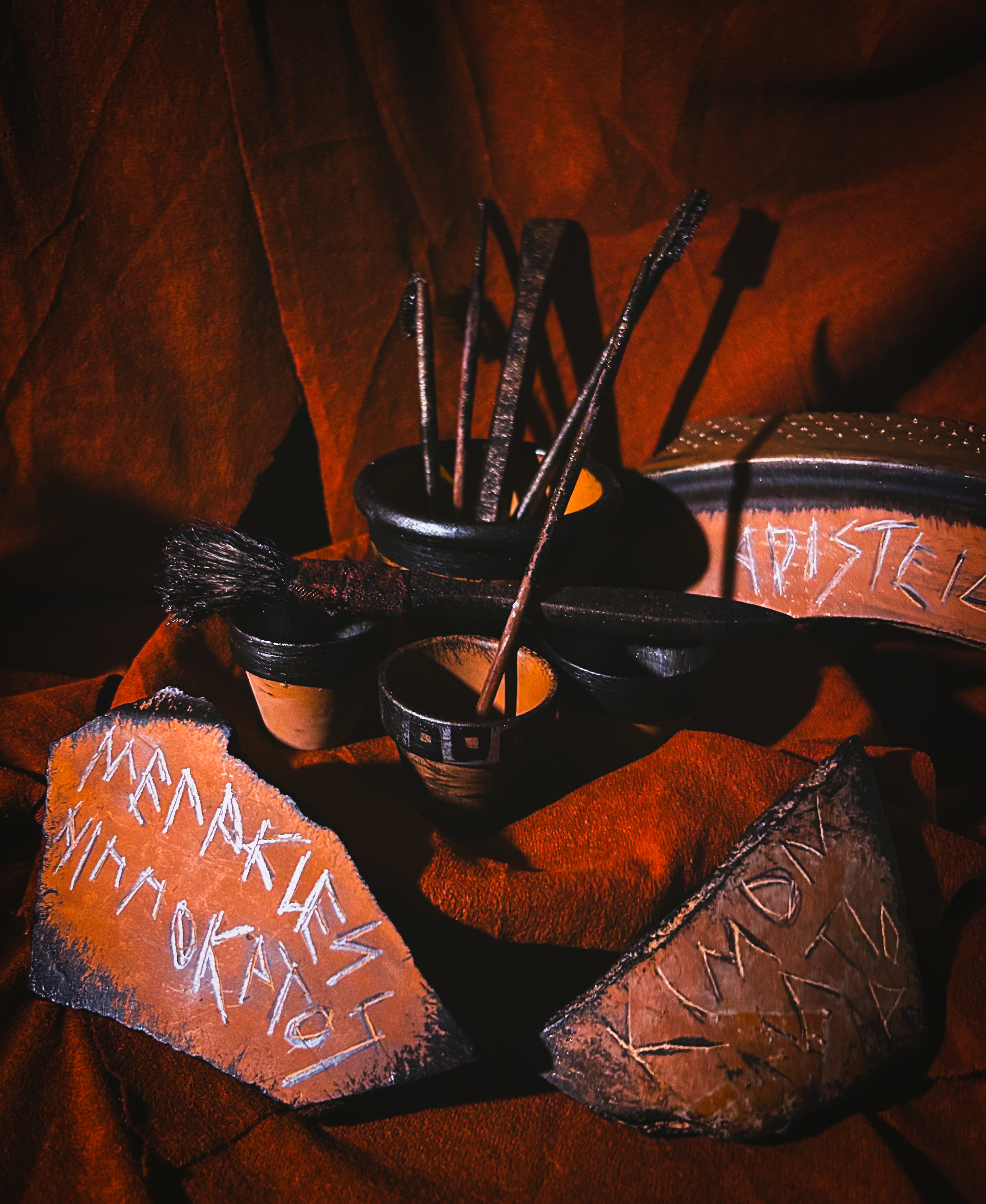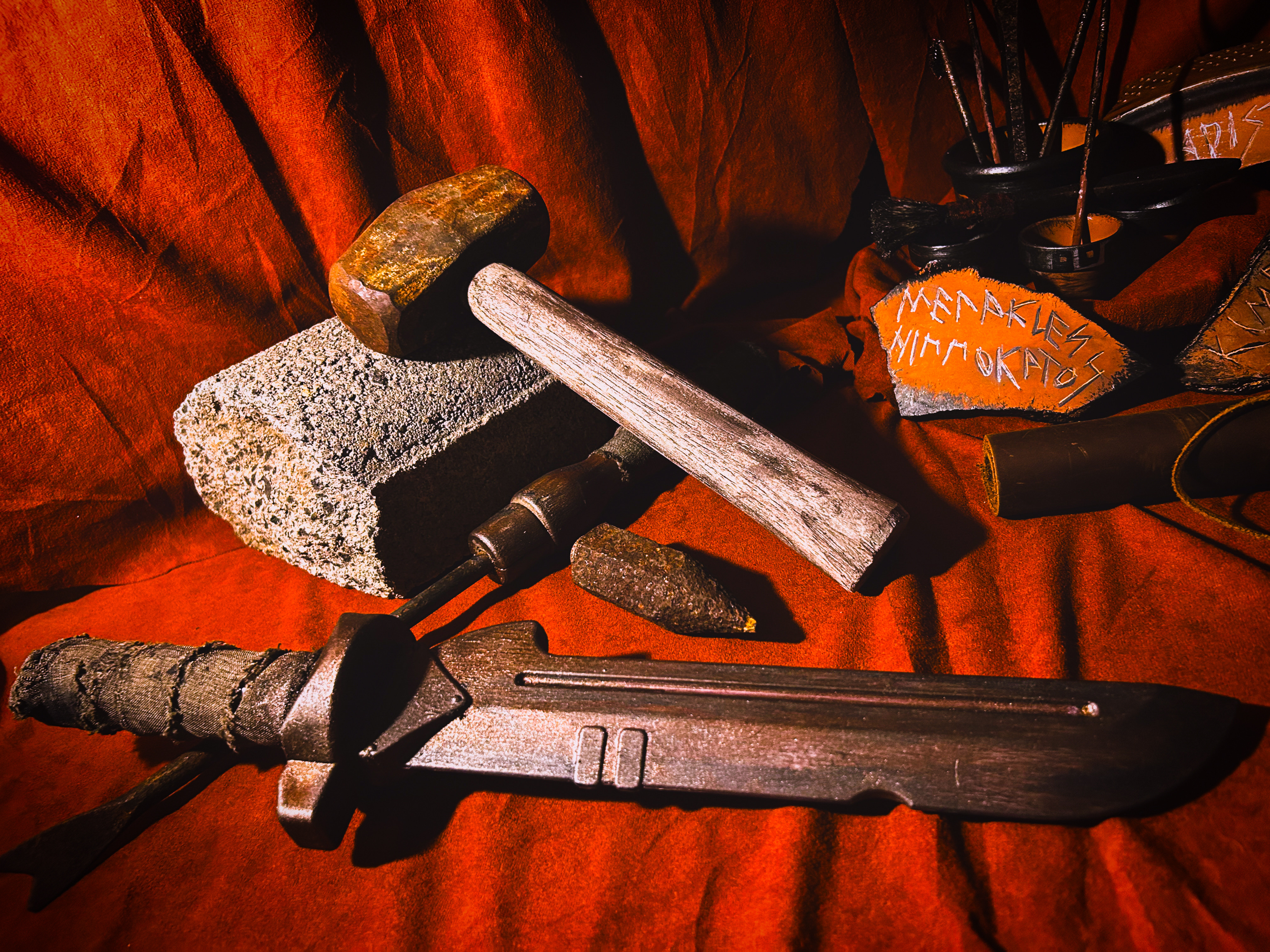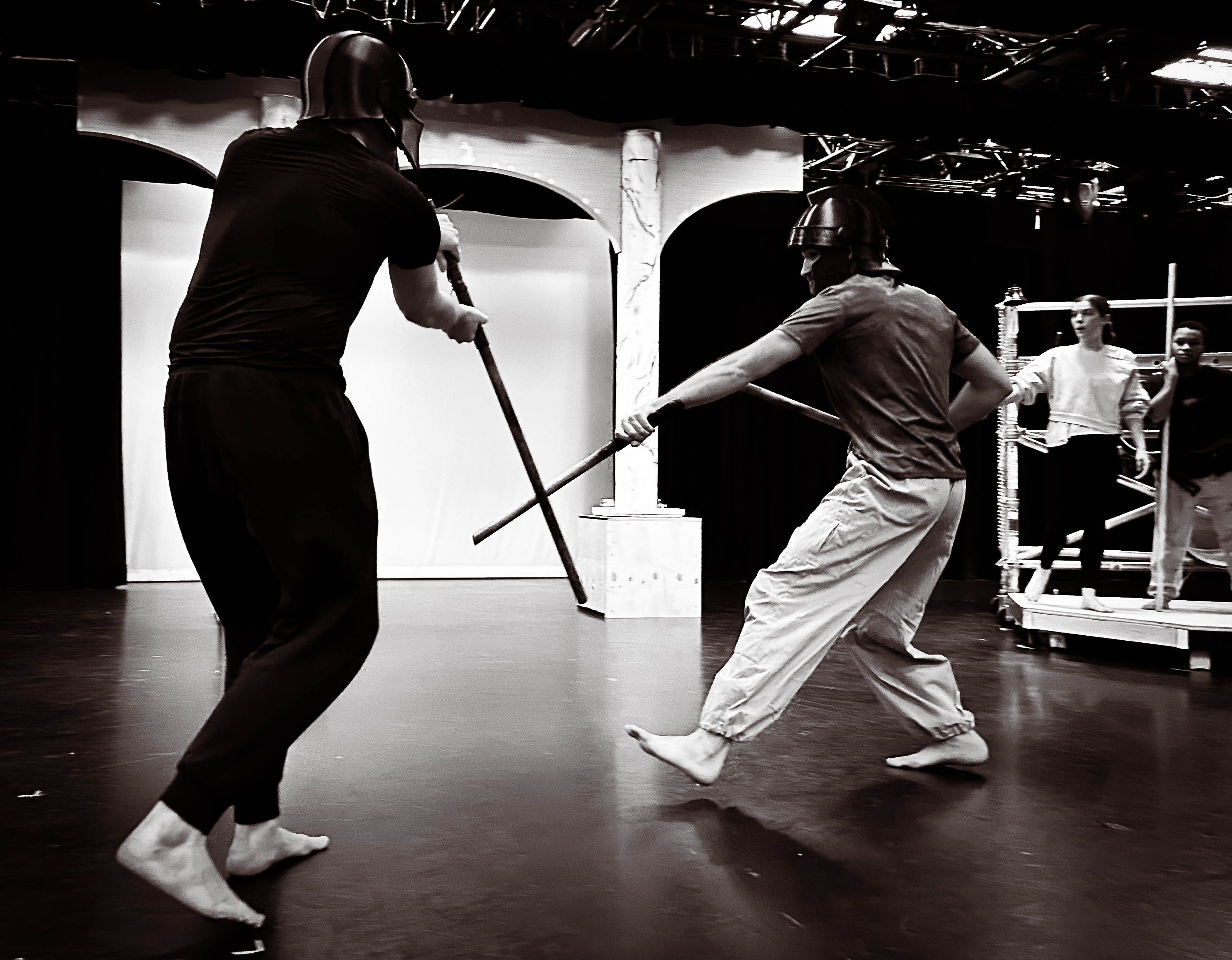 “Prop designer Quinten Avila provides props that are easily used by the actors and evoke the ancient time of the play.”