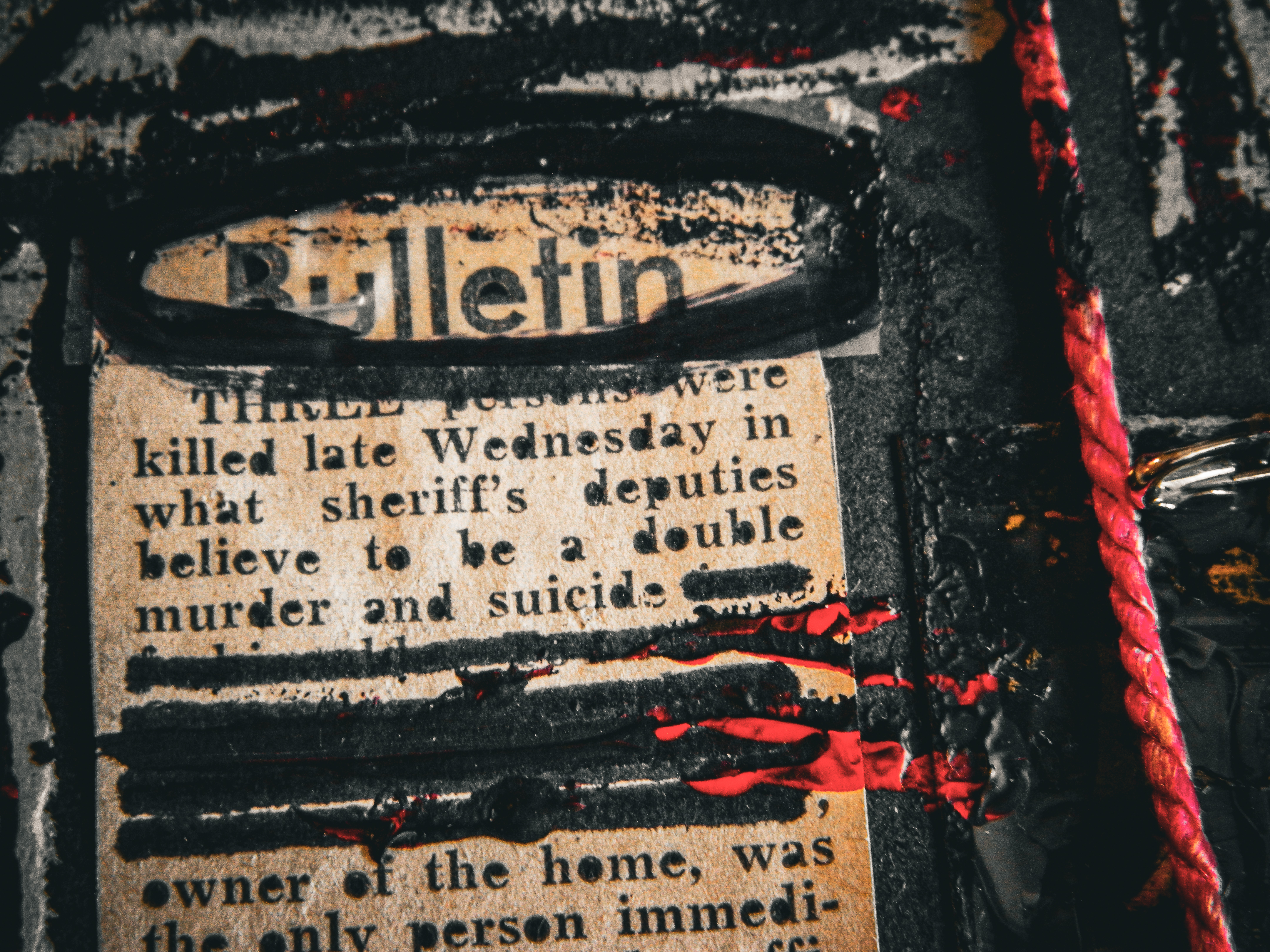 “Sherlock Holmes, Agatha Christie, and Truman Capote are no longer characters or professors of the noire, detective story. They walk among us, unfortunately. In my lifetime, I’ve witnessed the rise of a genre of content often referred to as ‘true crime’…a non-fiction category of media characterized by personal accounts, historical investigation, and amateur forensics. Armed with microphones and a morbid sense of curiosity, everyday people take investigation into their own hands and plunge into the unexplained or unresolved cases of their respective communities. But my concern was always this…what happens when those who seek justice are not in a position to enforce justice? Do we become the same intrusive monsters we hunt? SUSPECTS was my answer to that question – a visual journey toward uncovered truths after the style of an evidence board one might find in a crime-enthusiast’s basement or someone who watches too many crime documentaries.”