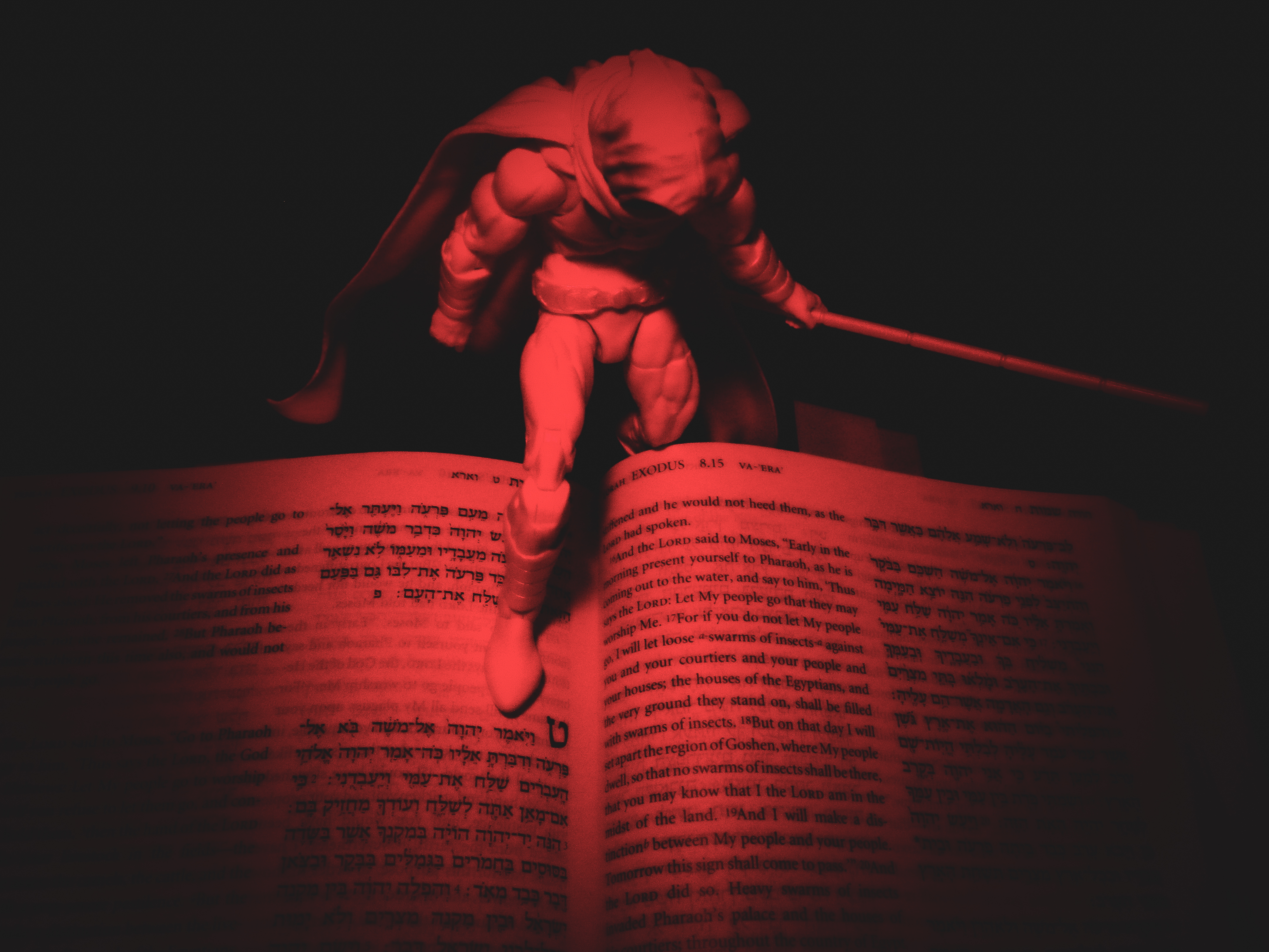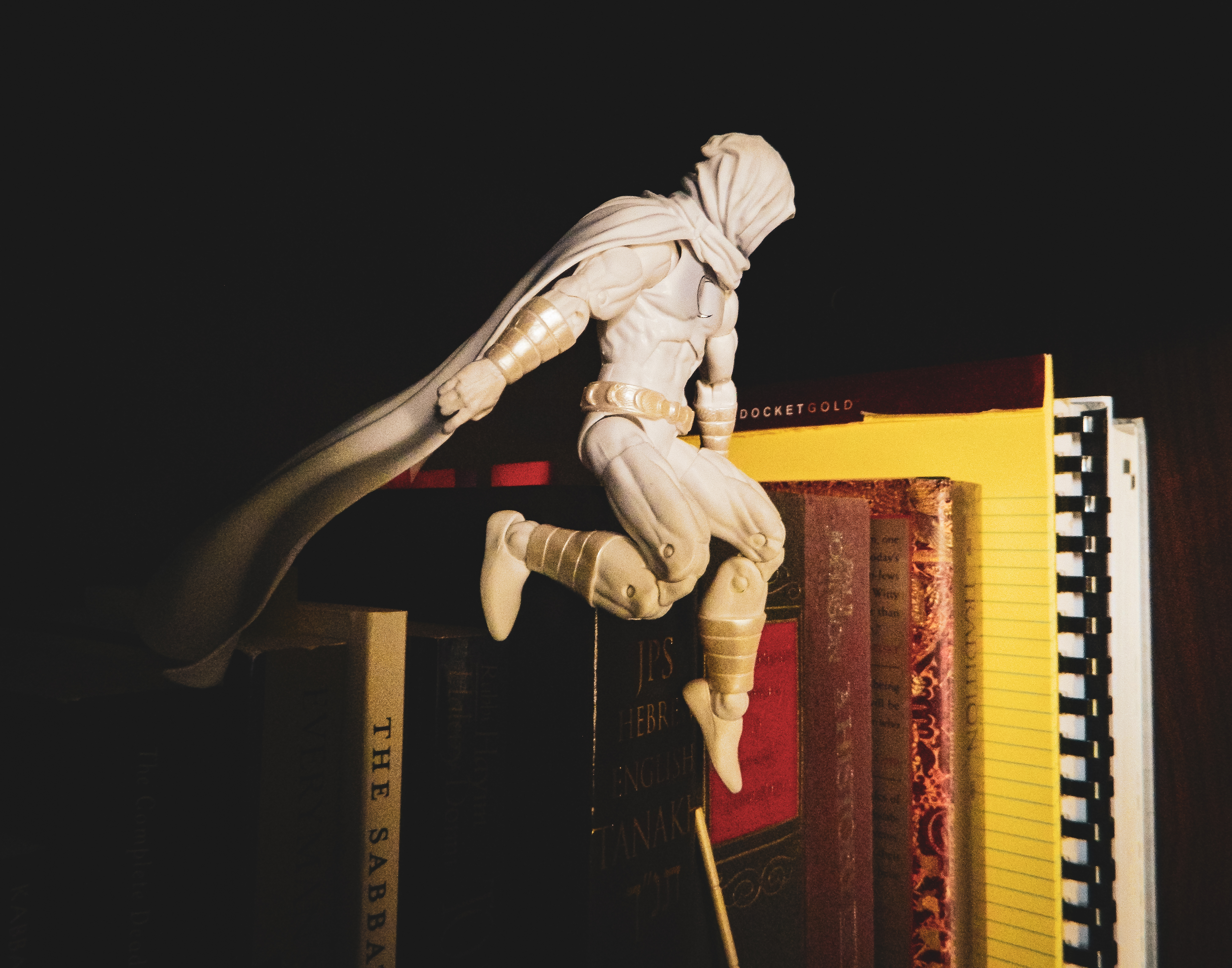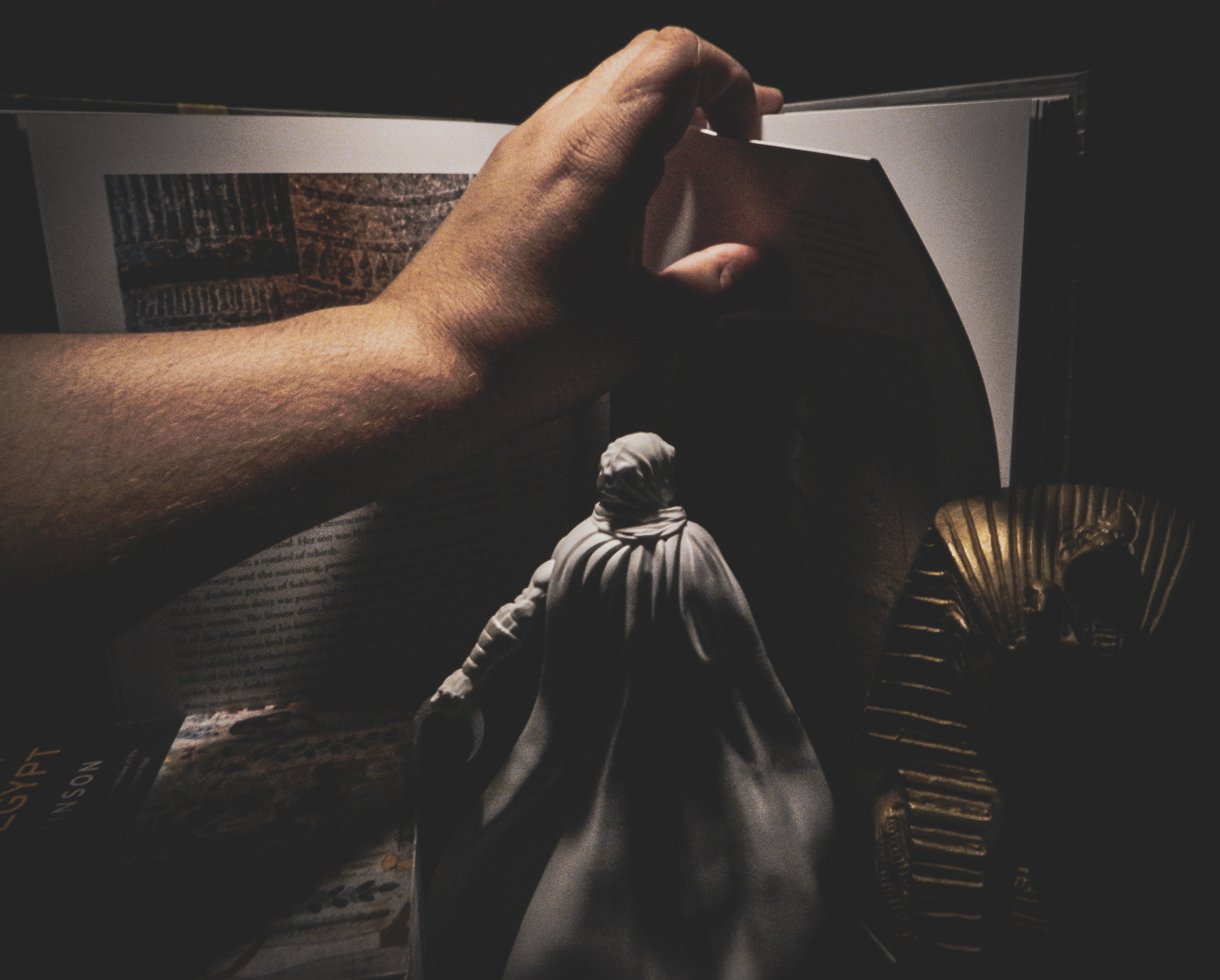 “I grew up on The Prince of Egypt (1998) and The Mummy (1999), so I was obsessed with Egyptian mythology right away, like a lot of kids were, I’m sure. My Mom bought me that interactive Egyptology book that was a part of the ‘ologies’ series from the book fair at school and I couldn’t put it down. This ancient culture was just so fascinating to me. When I was an adult, my attention went back to the ancients when I became aware of Shakespeare’s Antony and Cleopatra and Marvel’s Moonknight. I was tickled to know that Marc Spector was actually a Jewish superhero who nonetheless relied on an Egyptian deity for his powers. Stan Lee was Jewish too, by the way. I like to think if I had a more Jewish childhood I would’ve played with Moonknight action figures sooner or at least had this character’s kickass journey in my life longer. Better late than never.”